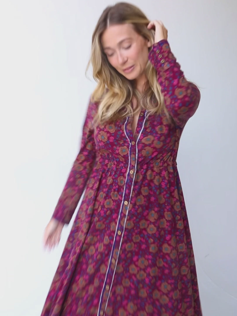 - Full button front on the outside with a hidden adjustable waist tie