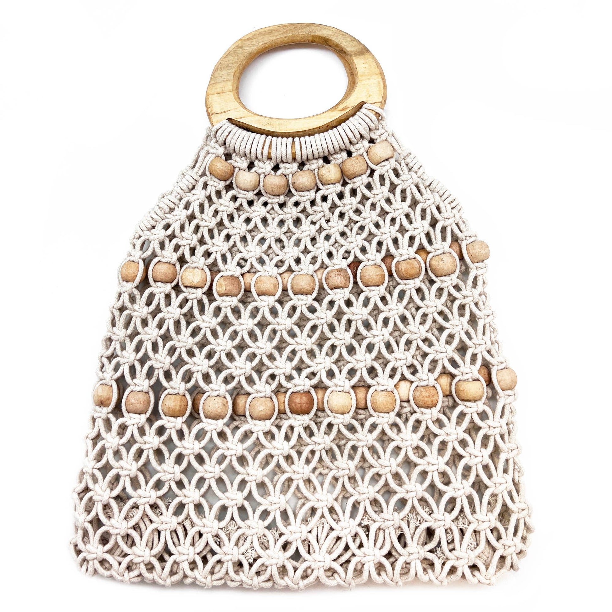Coco Bag - Cotton macrame open weave bag with wood beads
