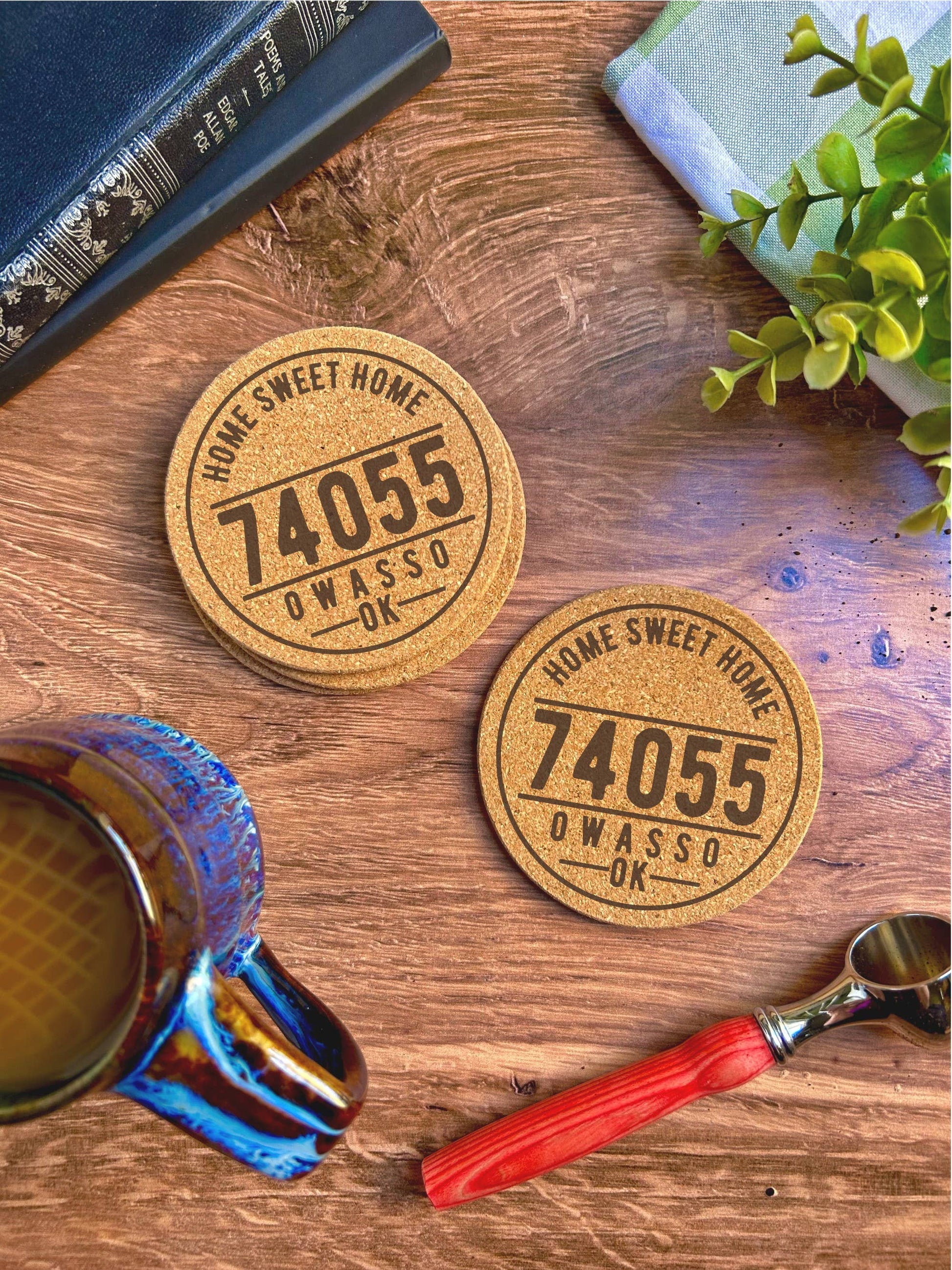 Custom 62035 Zip Code and City Cork Coasters - Sold Individually