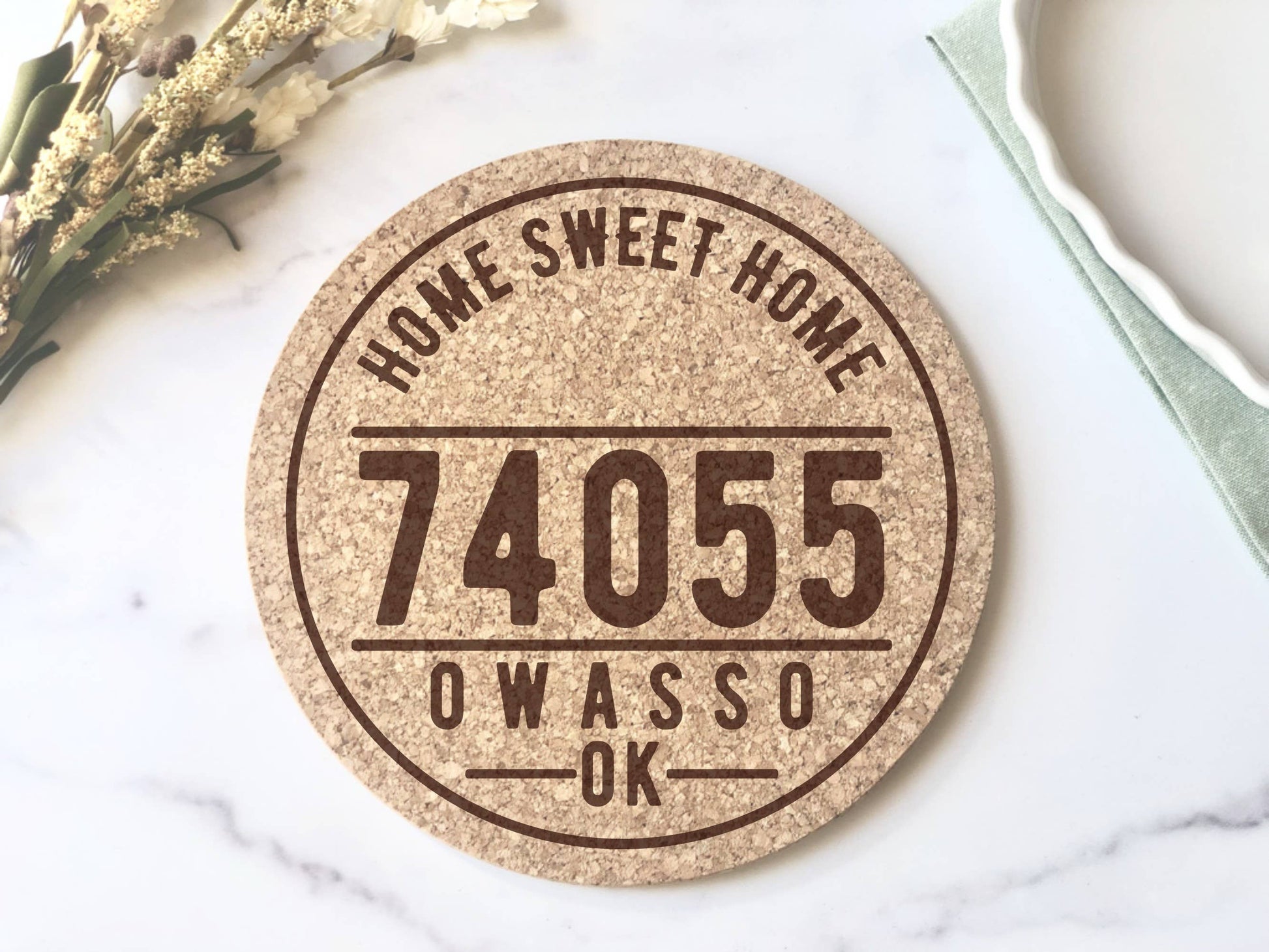 We can customize this trivet with any zip code, city and state you desire. This requires a special order and lead time. Please contact us in store or via the website to inquire. Due to the custom-made nature of this item, it is not eligible for returns.
