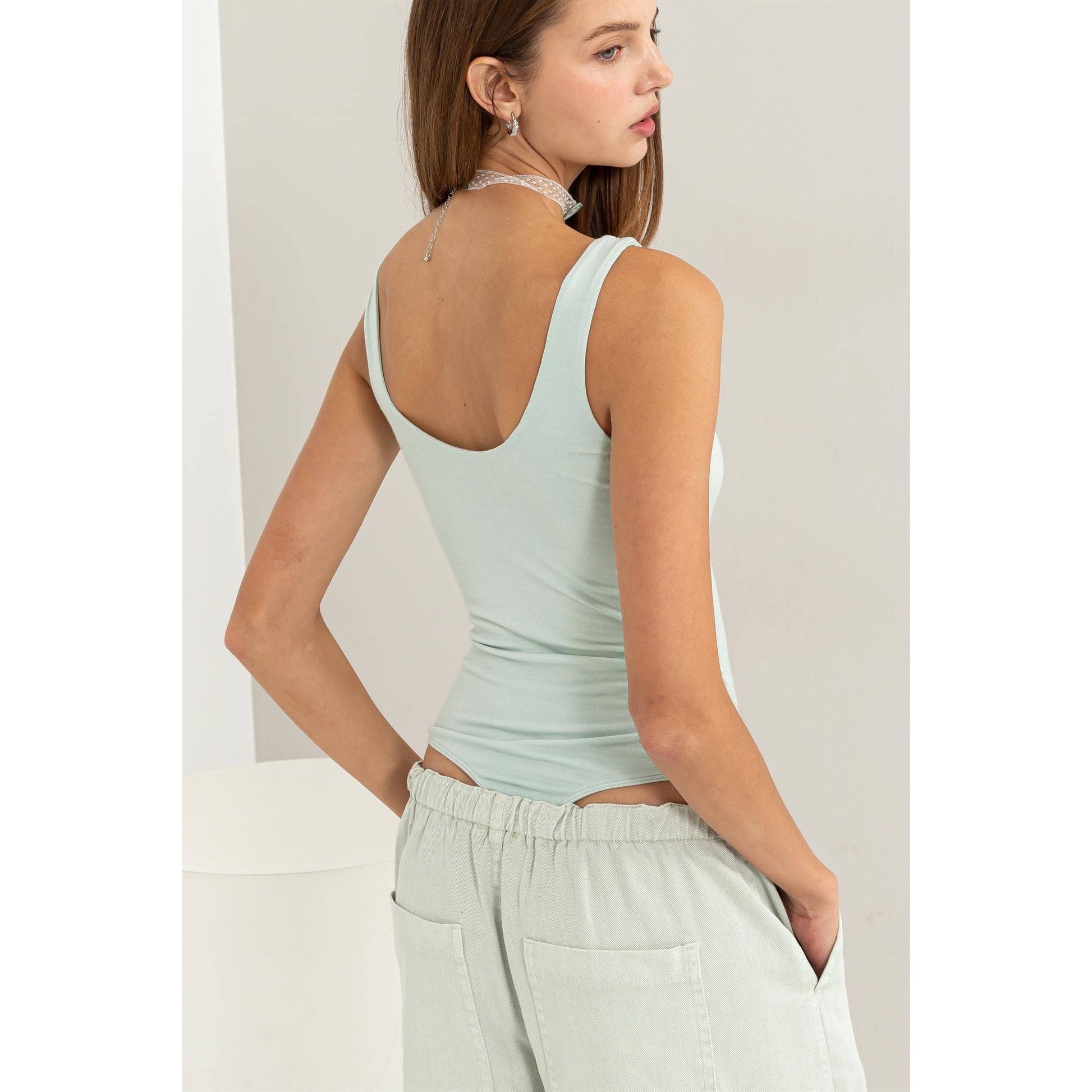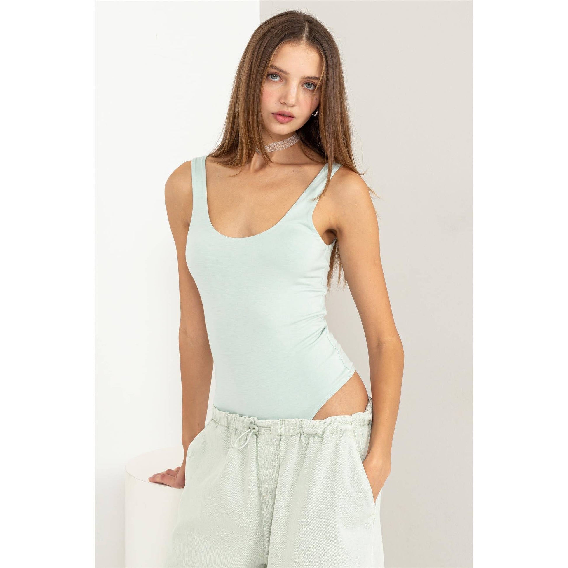 ALL YOU NEED IS THE HEARTS ALIGN SCOOP NECK TANK BODYSUIT AND YOUR FAVE DENIM FOR A SIMPLY PERFECT FIT. IT FEATURES A SCOOP NECKLINE, WIDE TANK STRAPS AND A FITTED BODICE. ATTACHED BOTTOMS WITH DOUBLE SNAP CLOSURE FINISH THE LOOK. 95% RAYON 5% SPANDEX. DESIGNED IN THE USA