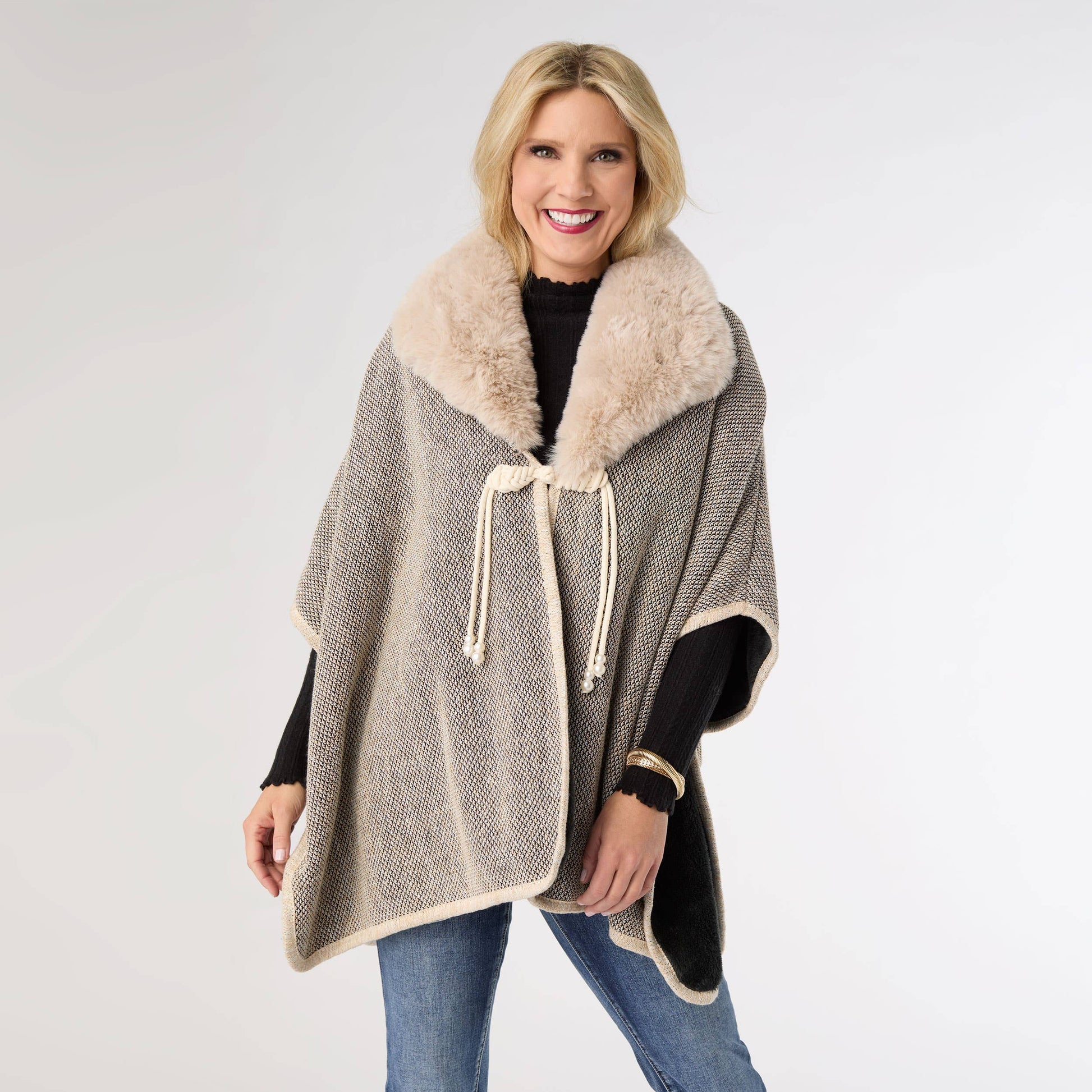 Wrap yourself up in elegance with our Elva Knotted Pearl Wrap with Faux Fur Trim. This must-have winter accessory is both cozy and fashionable, making it the perfect addition to any fall outfit. Get ready to turn heads wherever you go! Materials: Polyester/Wool.
