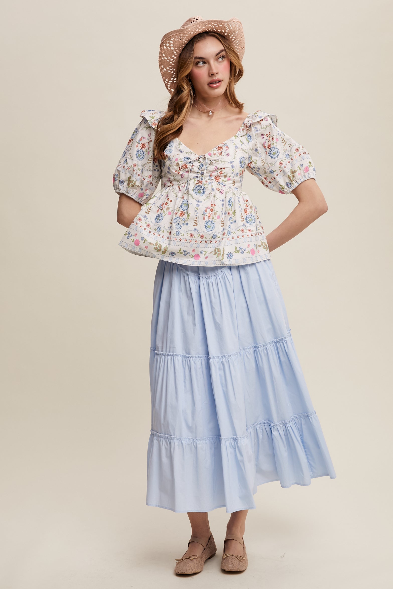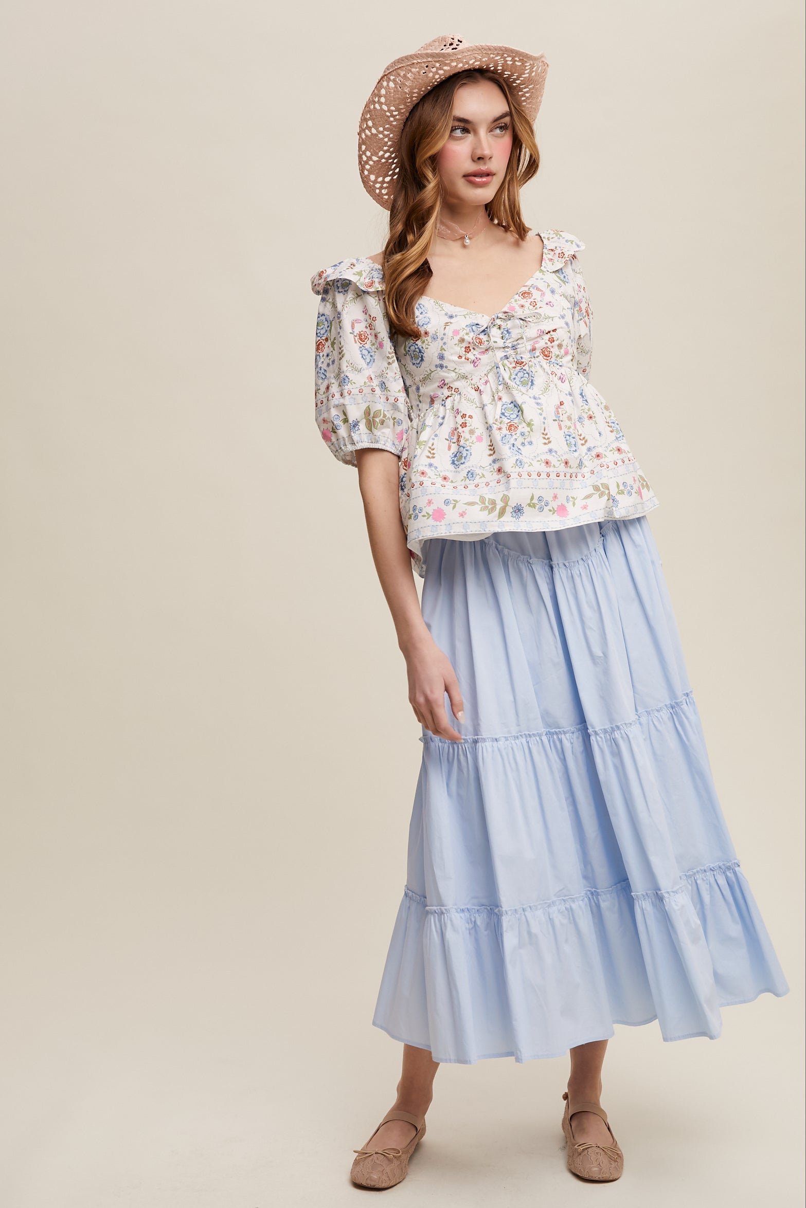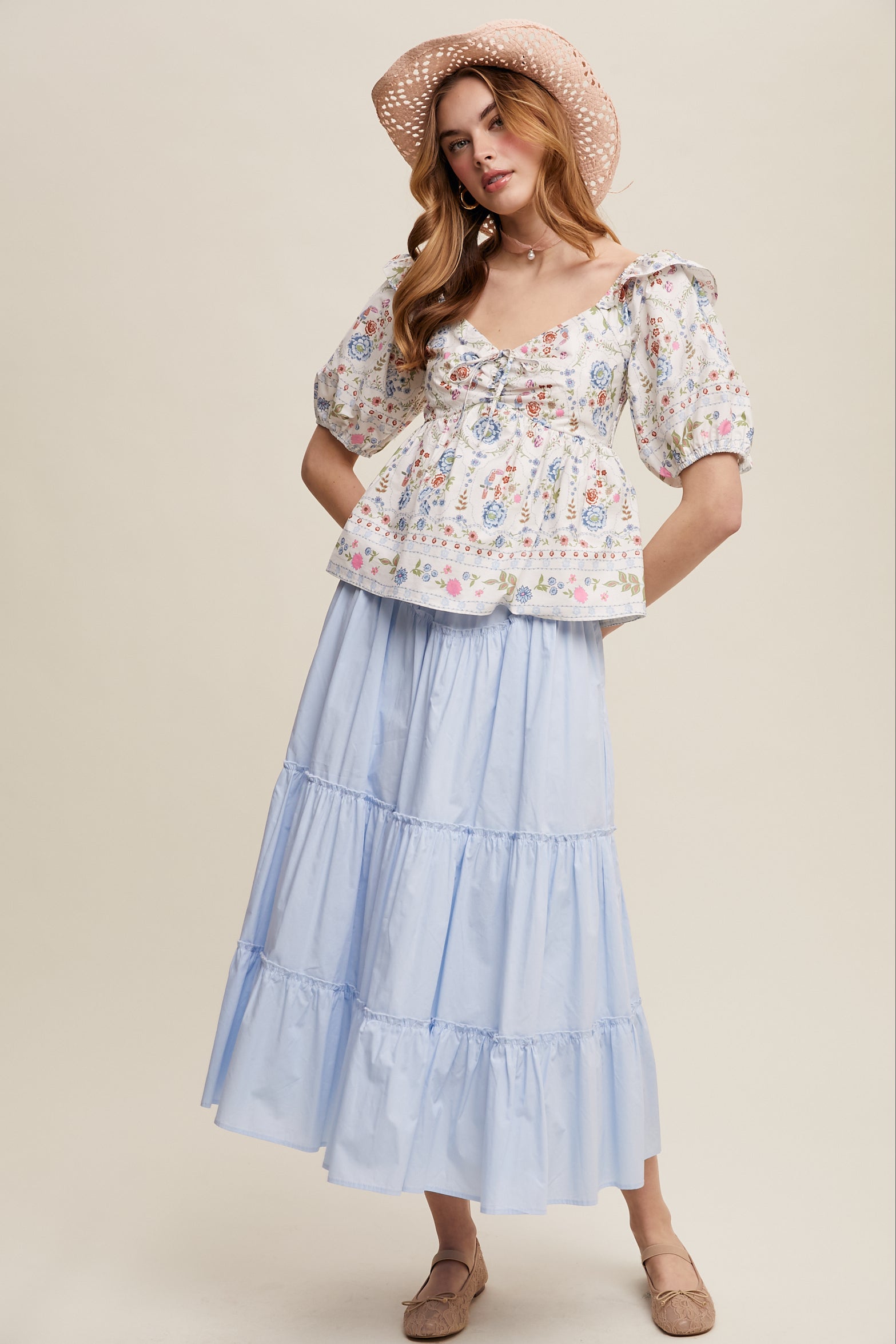 - Model is 5' 10" 34-26-36 and wearing a size Small This blouse pairs beautifully with skirts or high-waisted jeans, making it ideal for casual outings, brunches, or summer getaways.