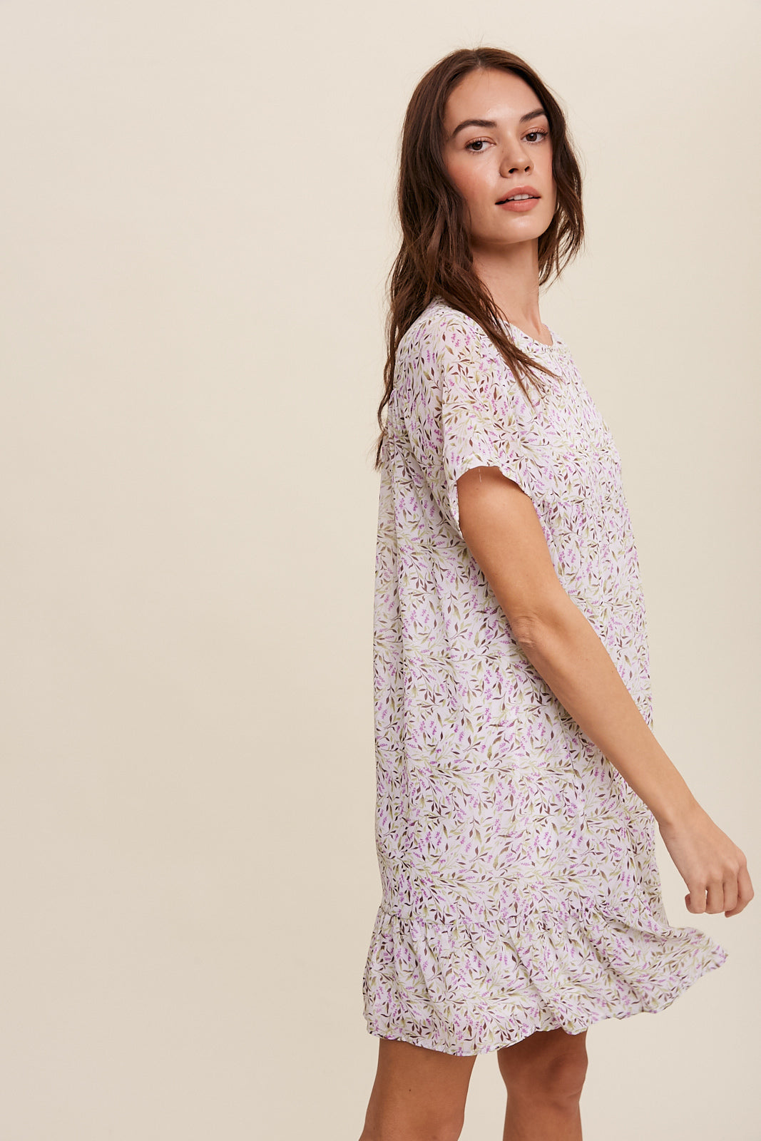- Flower printed chiffon babydoll mini dress