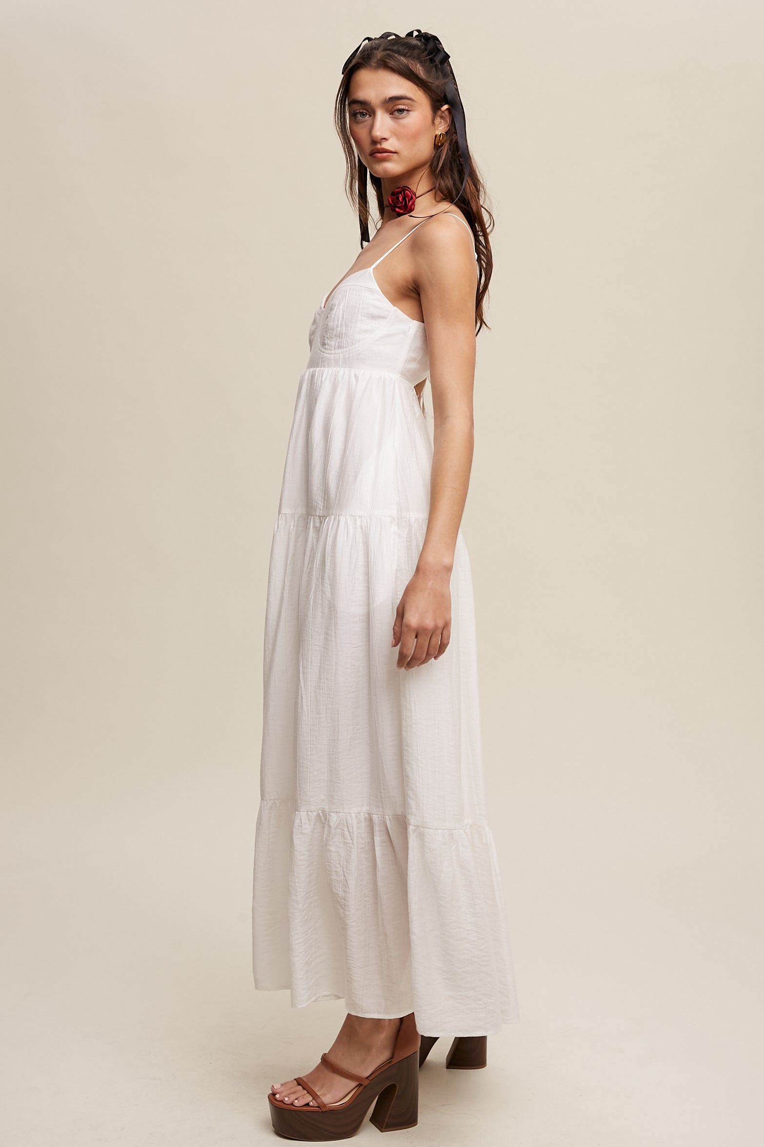 - Romantic Tiered Design: A flowy maxi dress with a tiered silhouette for a breezy and feminine look.