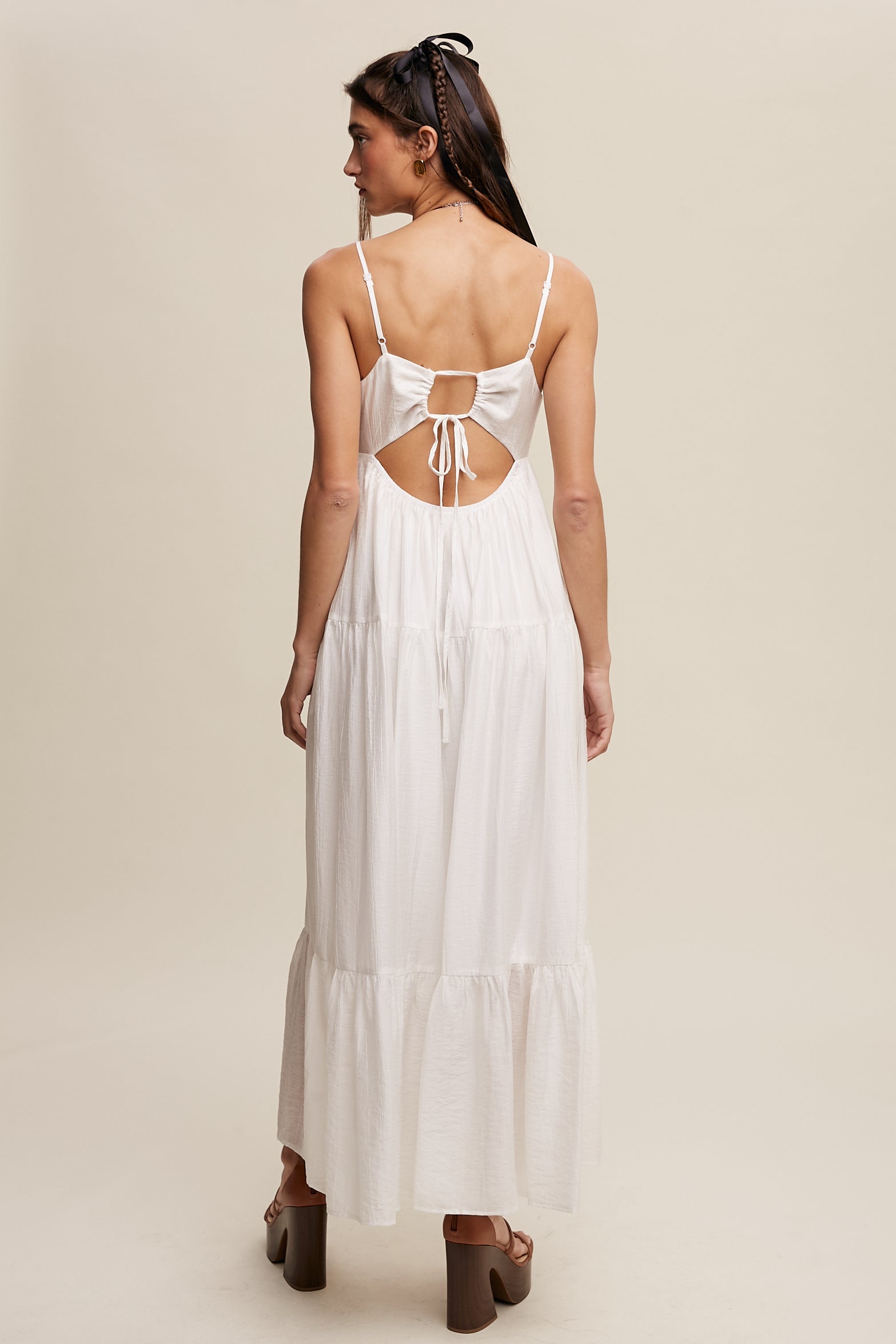 - Back Tie Detail: Open back design with an adjustable tie for added charm and functionality.