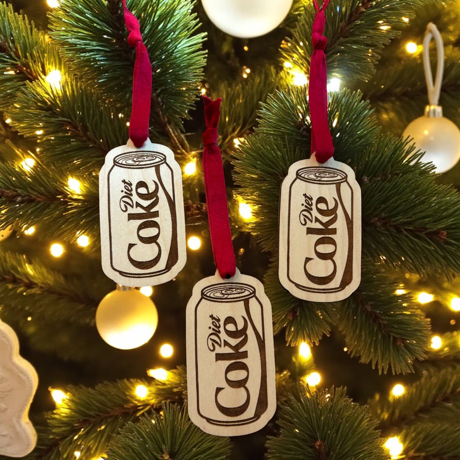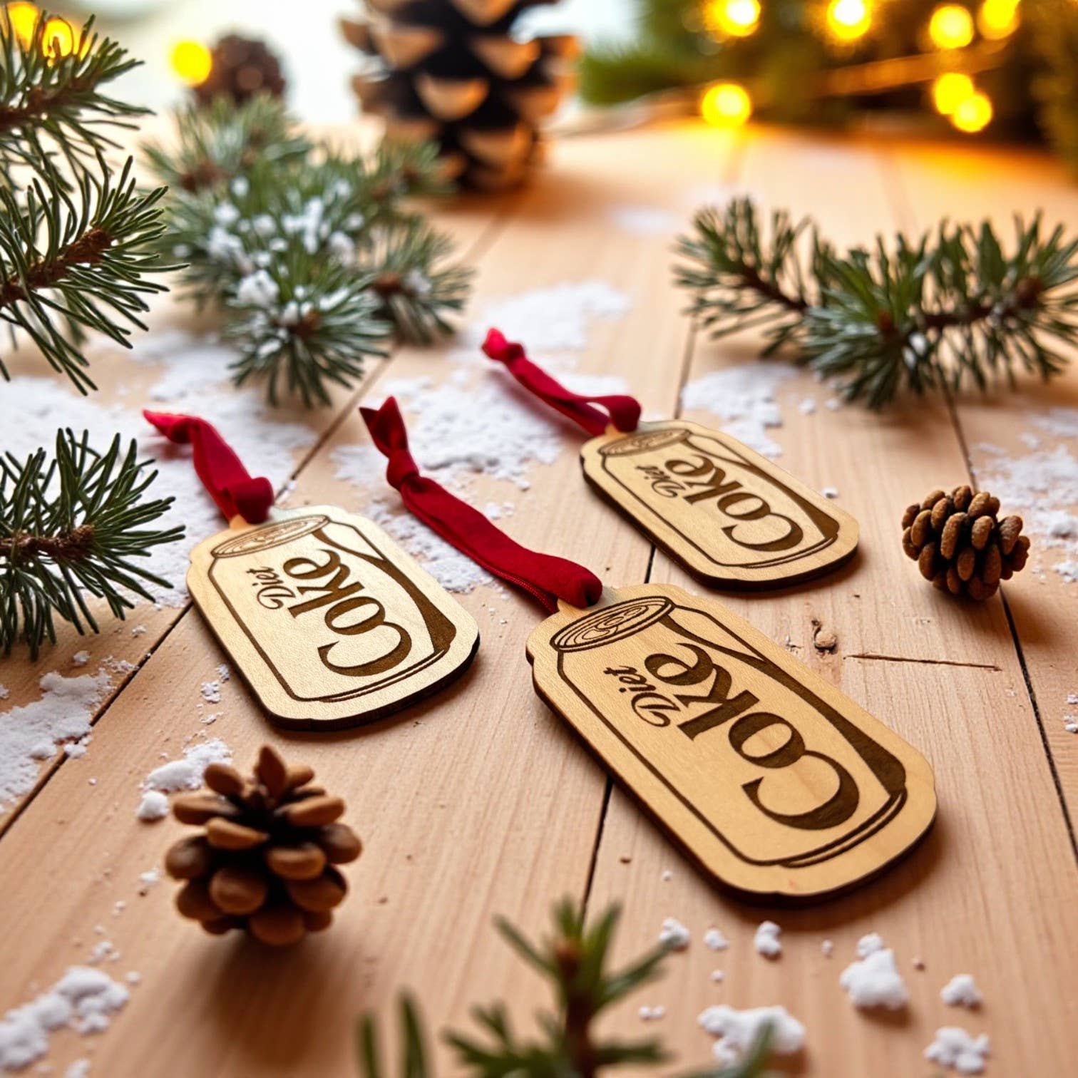 ✨ About the Ornament For the caffeine queens and soda lovers — this maple wood ornament celebrates the bubbly classic that keeps you running. Laser-cut and engraved with love, finished with ribbon or twine for a touch of sparkle on your tree.
