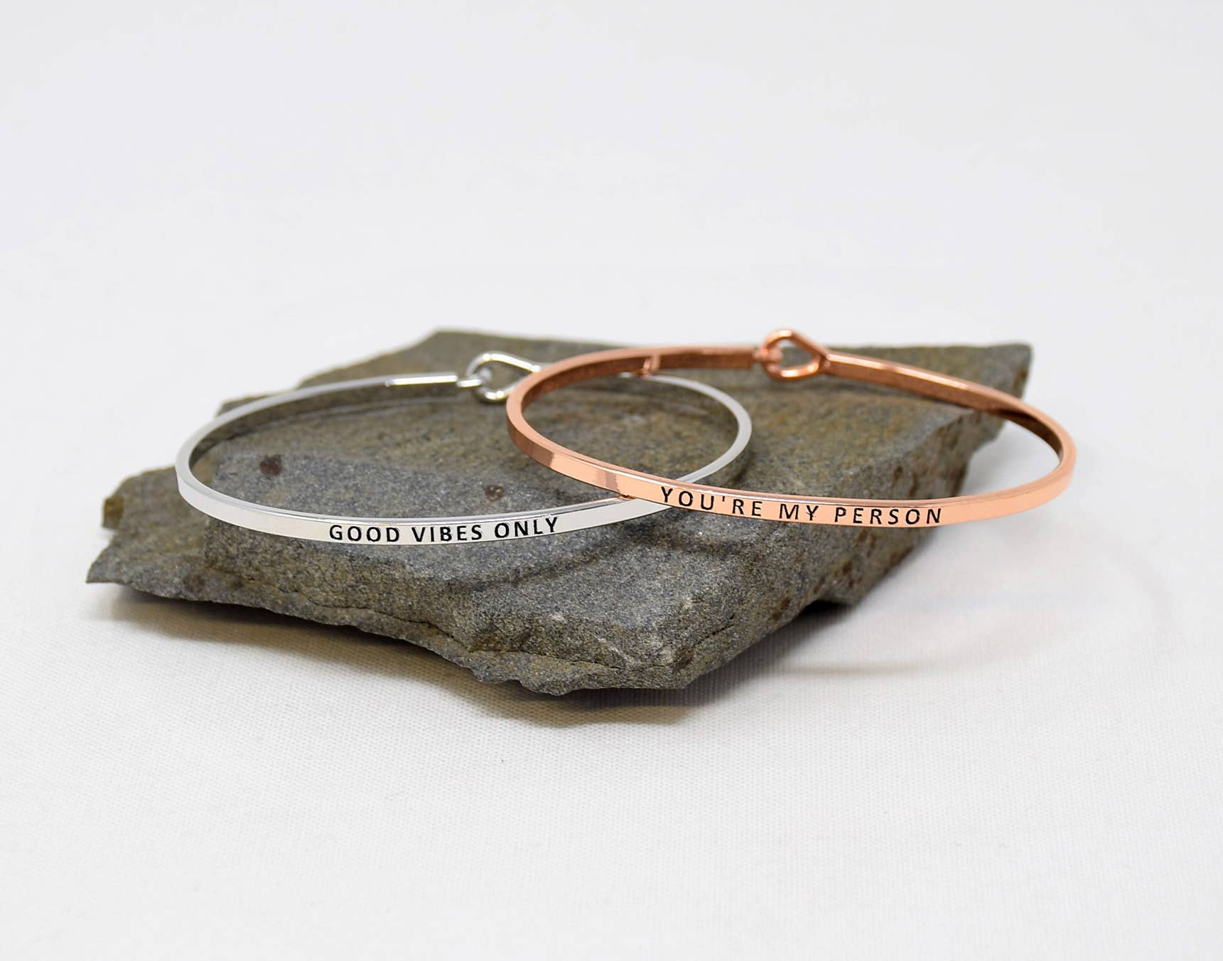 Inspirational bracelets that make for an excellent and meaningful gift for yourself, friends and loved ones. These are subtle, elegant, and beautiful alone or stacked creatively. We have an array of messages that you can mix and match to your heart's content. Wear it with purpose and care!