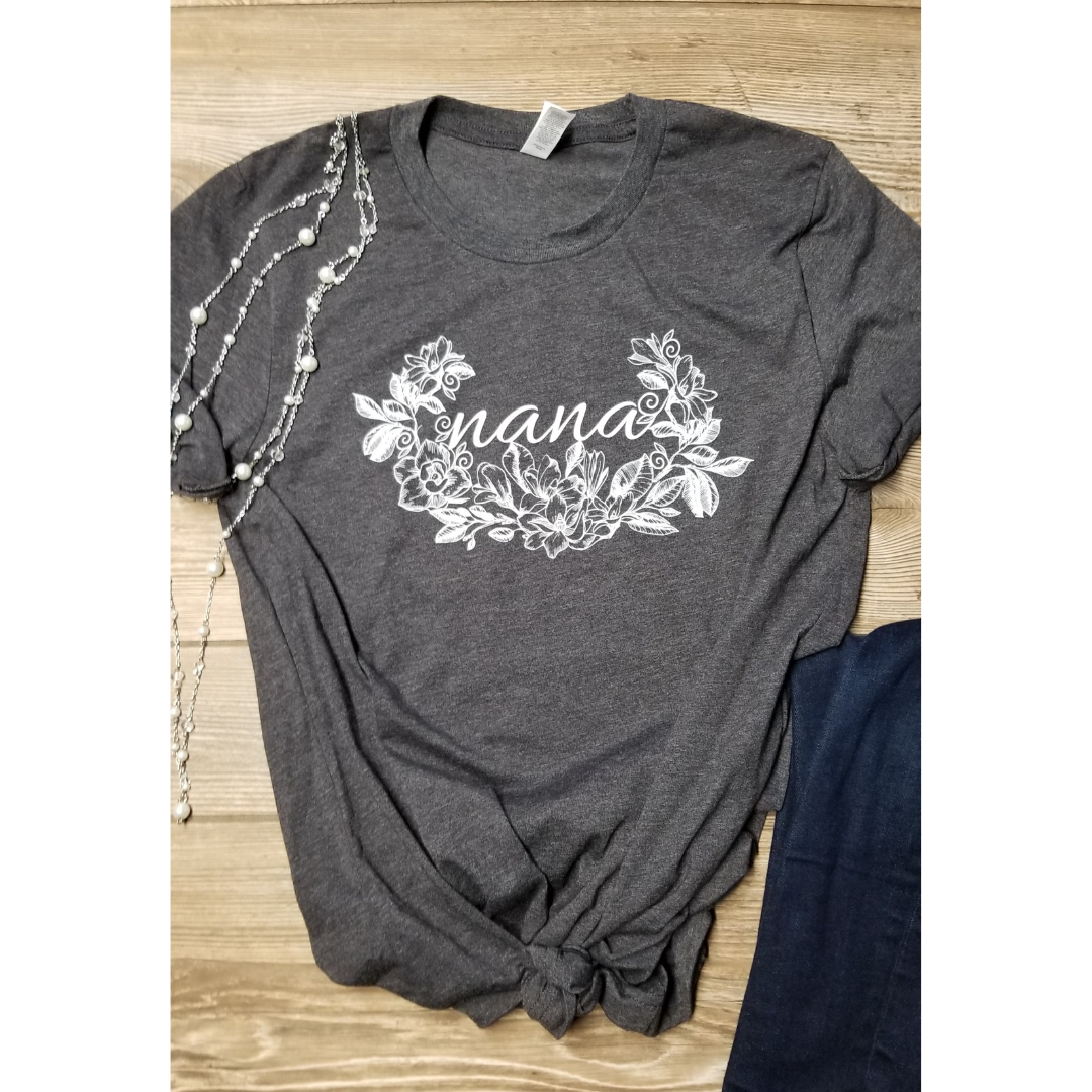 A beautiful gift for the most important lady who started it all! A beloved Nana needs a beautiful shirt to celebrate her role as the best grandparent around. This soft tee is a cotton polyester blend- Unisex Fit- Pre-shrunk- Bella+Canvas Fits true to size.