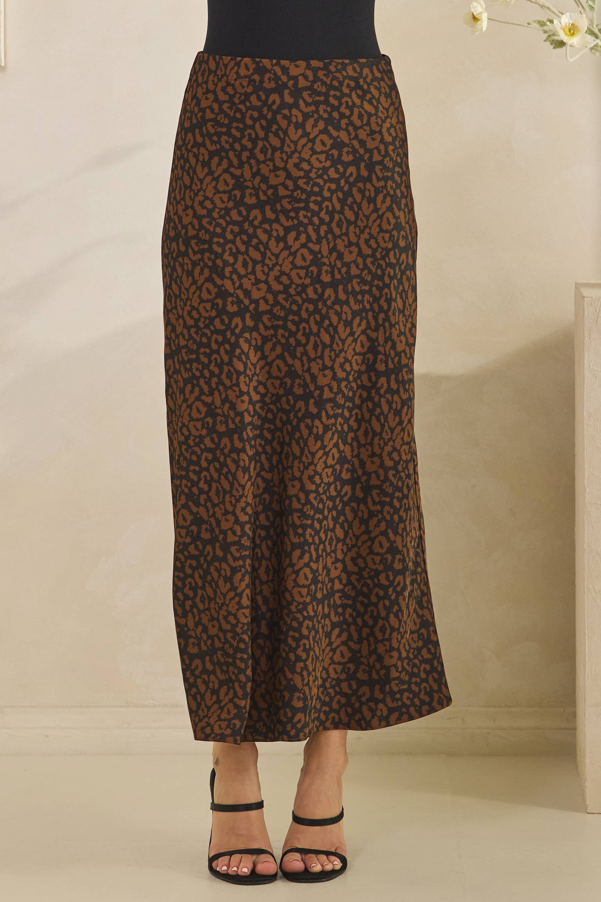 LEOPARD SATIN SKIRT