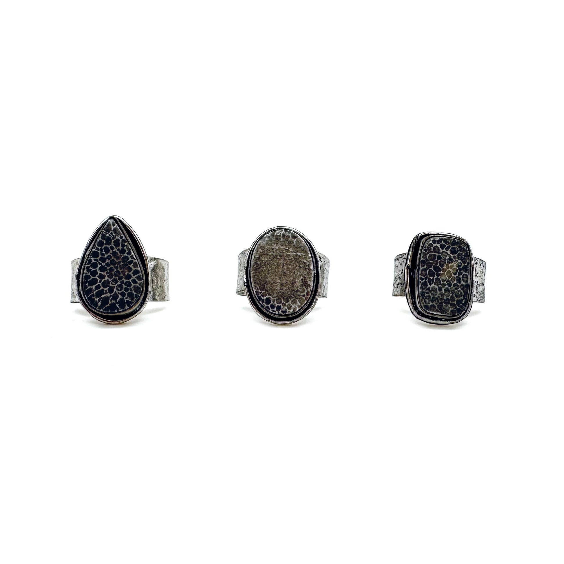 Kashi Semiprecious Large Stone Ring - Black Fossil Coral