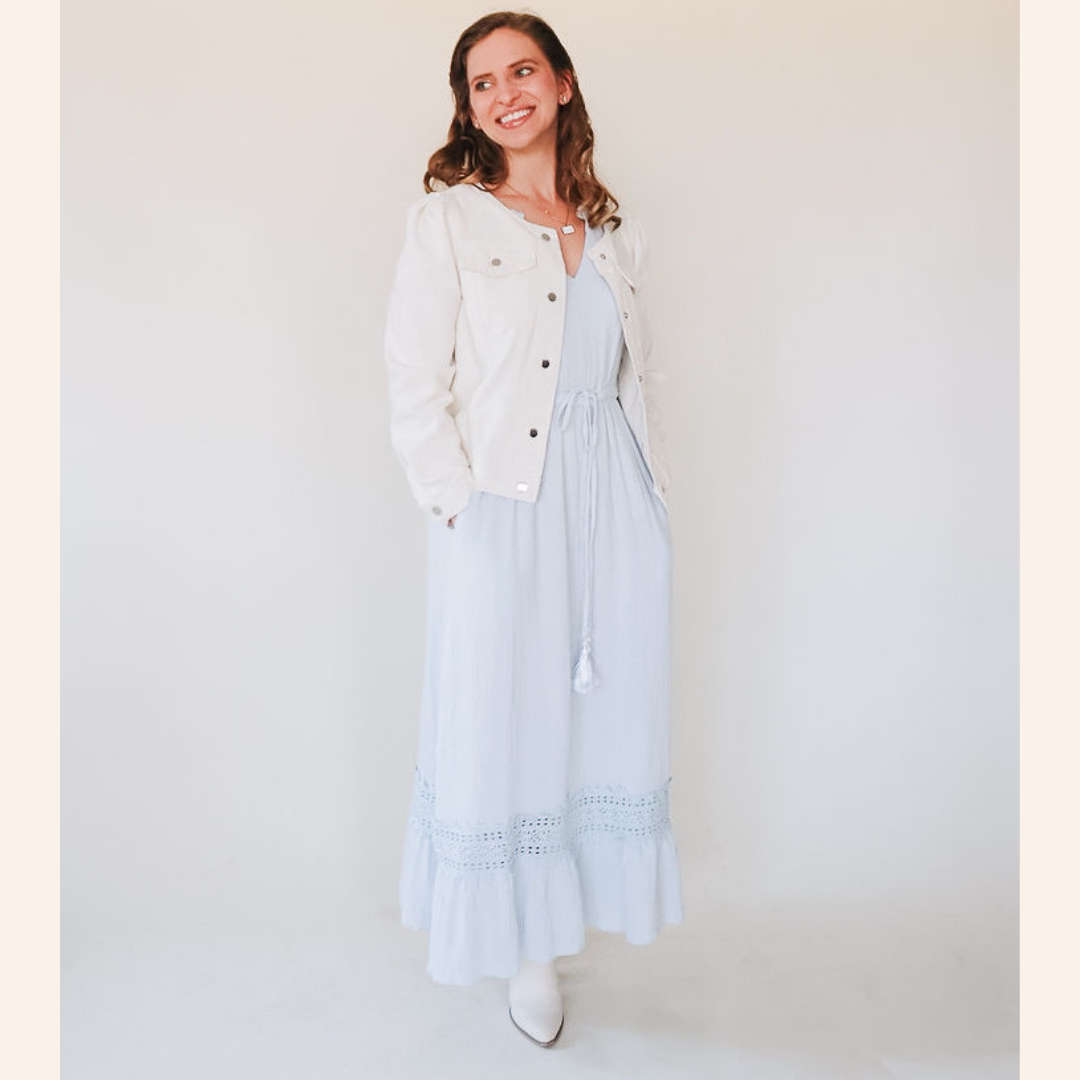 The magic is in the details! Complete with charming drawstrings, darling lace cutouts, and the most adorable, ruffled collar, these light blue dresses are the epitome of perfection. Not only will you be comfortably stylish with the elastic waist, but the beautiful calf length of this dress makes it perfect for any occasion! For your little lady, the neck strap can be adjusted to grow with her so she can rock this dress for years to come!