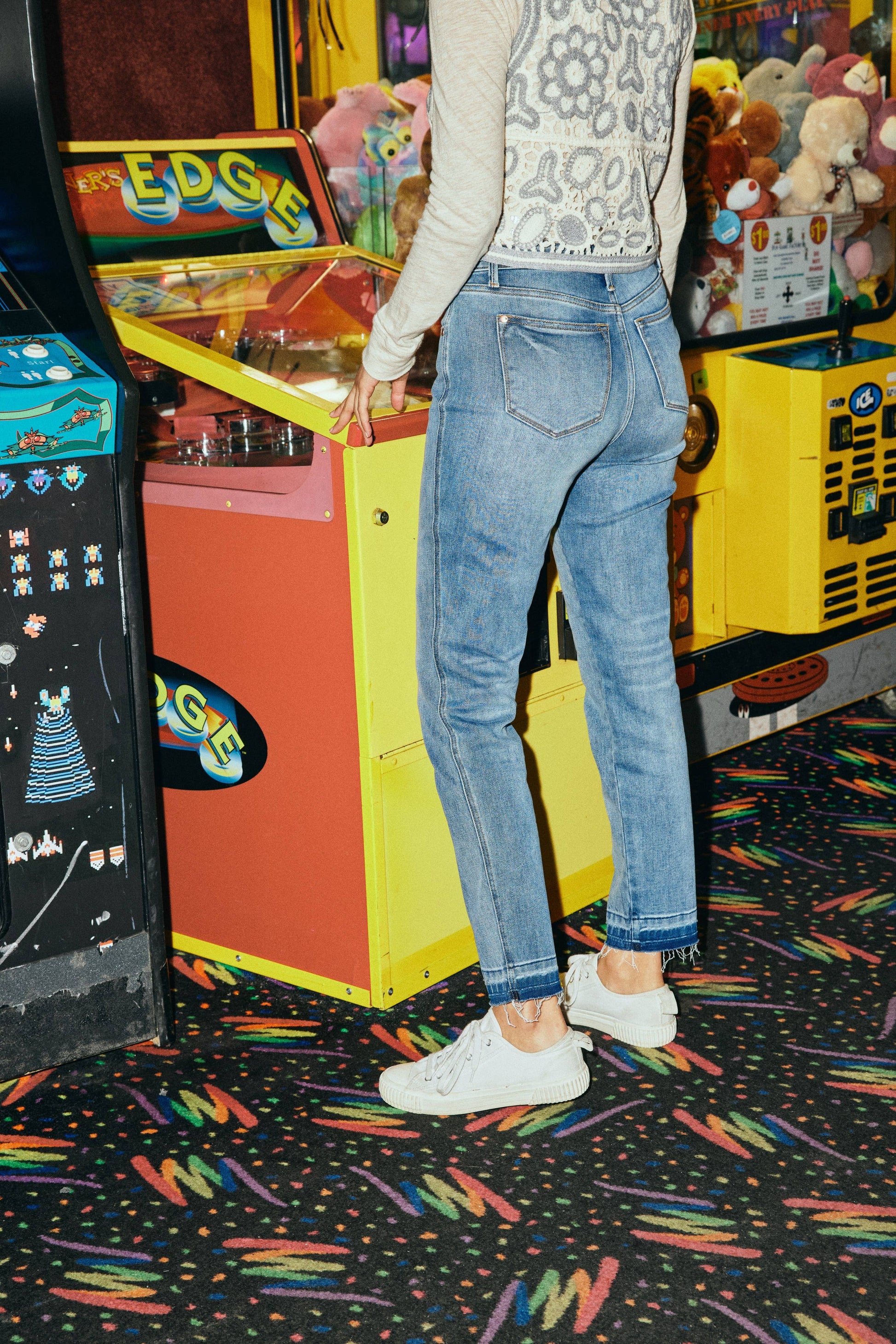 Our MR Rigid Magic Release Hem BF from Judy Blue Jeans is a must-have for every woman's wardrobe. These contemporary jeans are perfect for the spring/summer season with their medium wash and solid pattern. The boyfriend cut offers a casual, everyday style. The front panel is made of 71% Cotton and 29% Lyocell, while the back panel consists of 76.2% Cotton, 22.5% Poly, and 1.3% Spandex, ensuring a comfortable and regular fit. The jeans feature a front rise of 10 1/2" and an inseam of 29 1/2". Hand wash recommended. Step out in style with these ankle-length jeans.