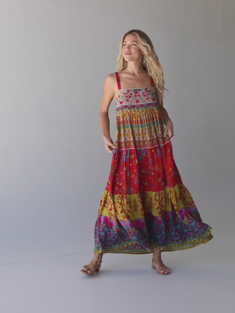 Natural Life Patricia Maxi Dress-Red Mustard Border
