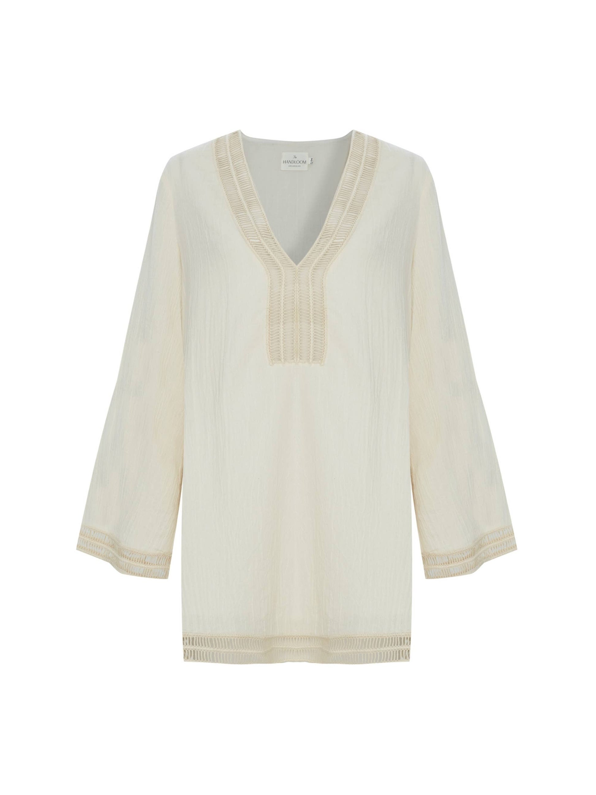 Organic Sustainable Beach Summer Dress with Lace Details Natural Bohemian Long Sleeve Casual Vacation Dress Mini Sundress Oversize