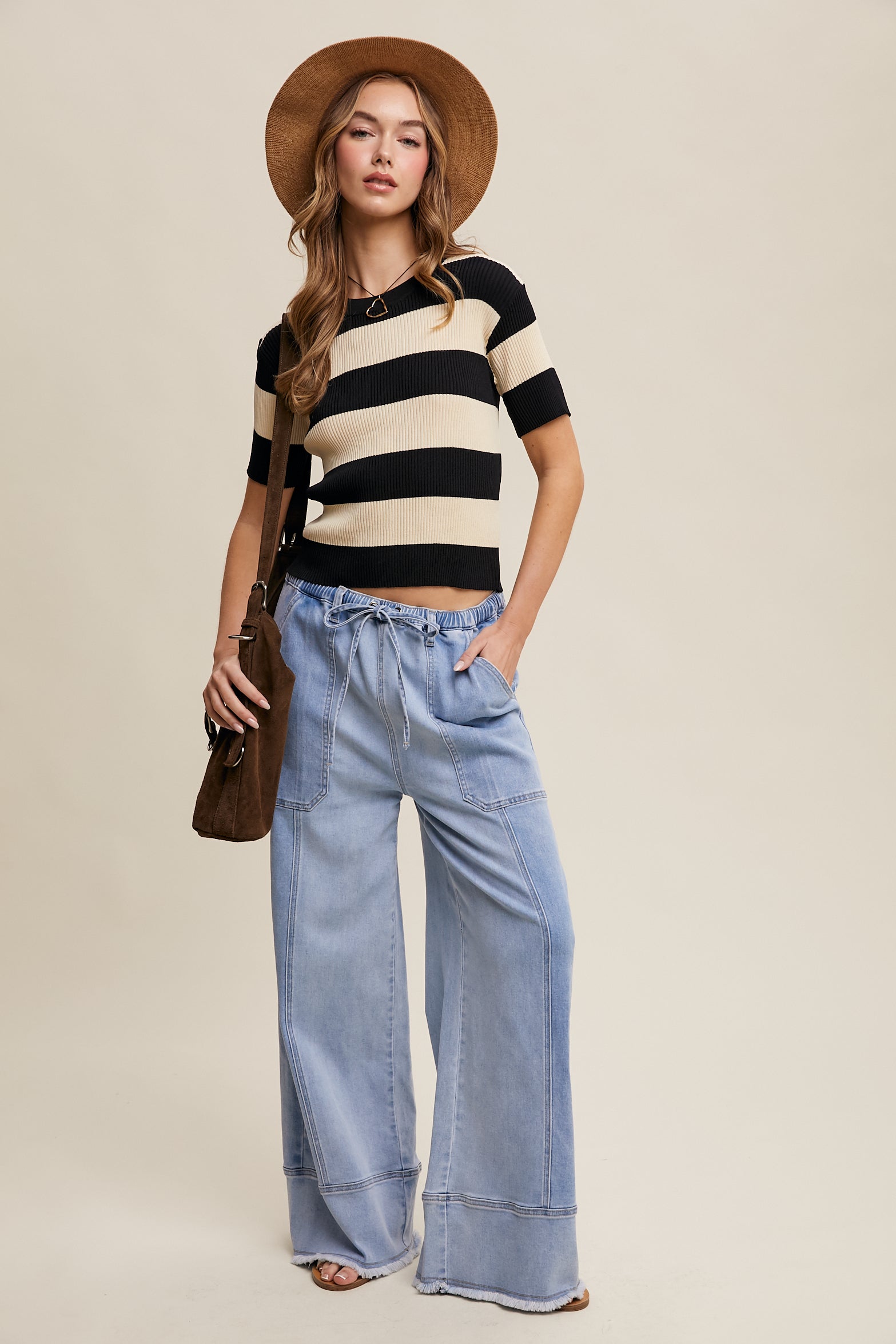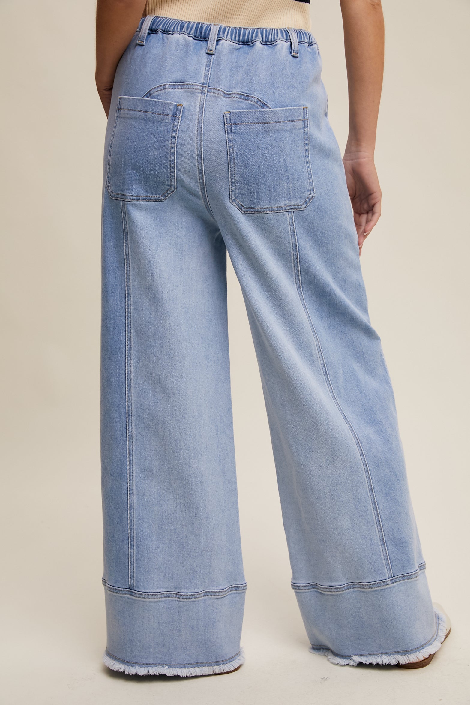 - Model is 5' 8" 30-24-34.5 and wearing a size Small These versatile denim pants pair effortlessly with casual tops or tailored pieces, making them a perfect wardrobe staple for a laid-back yet chic look.