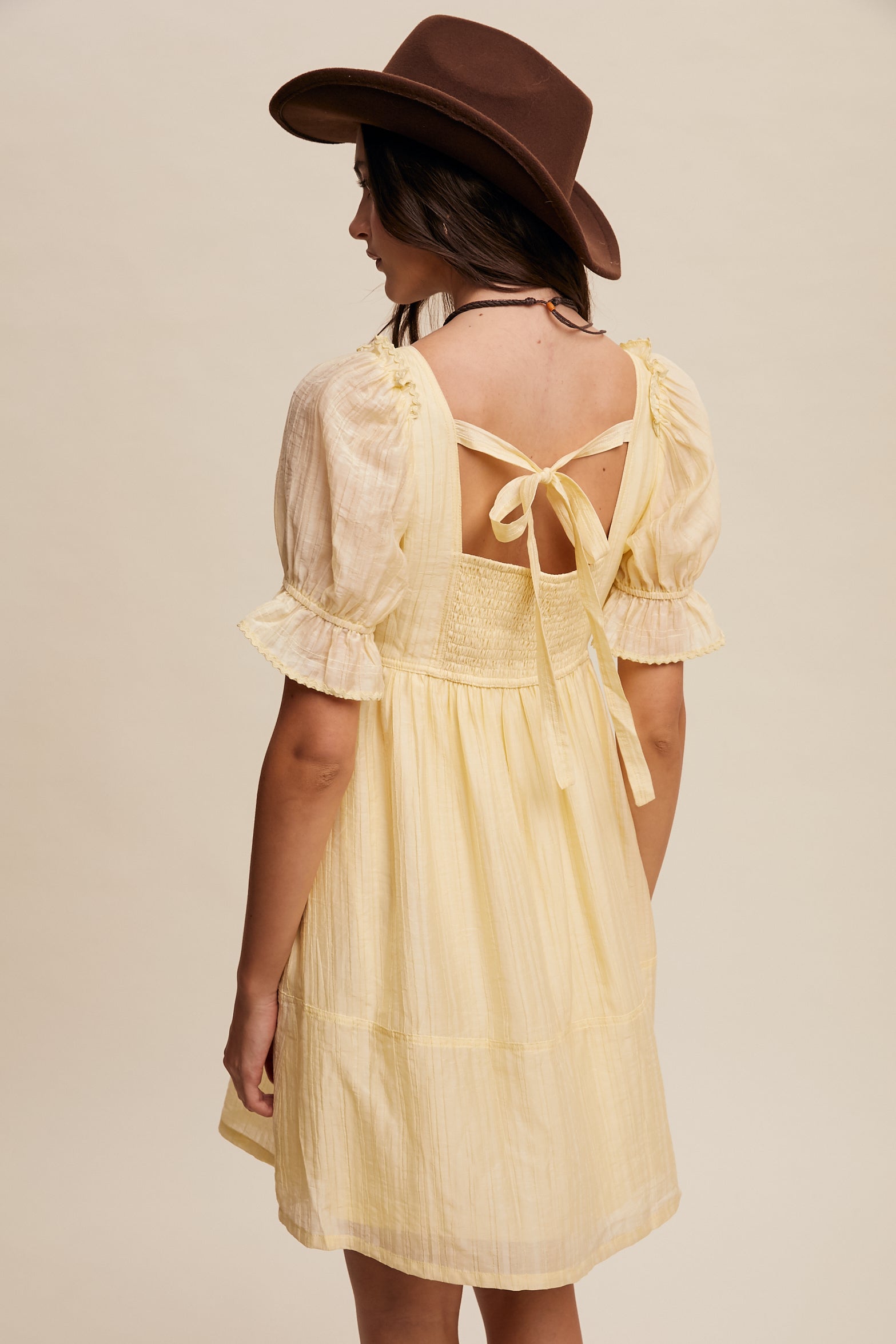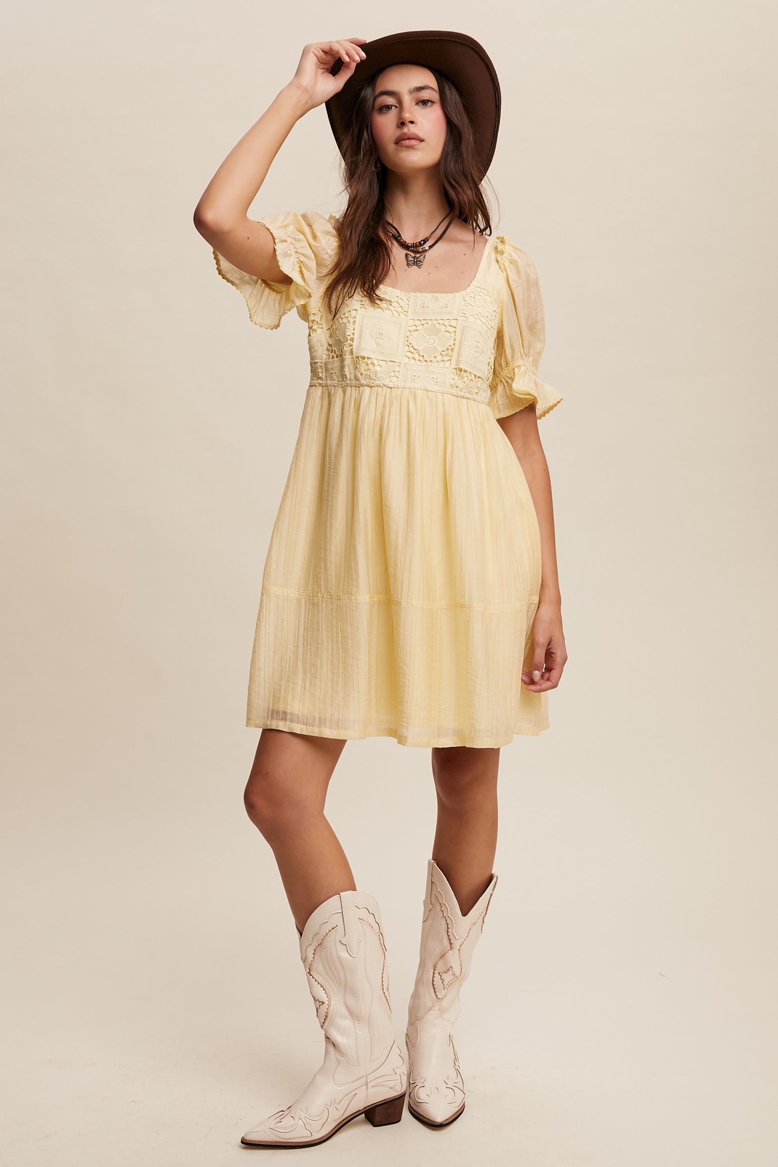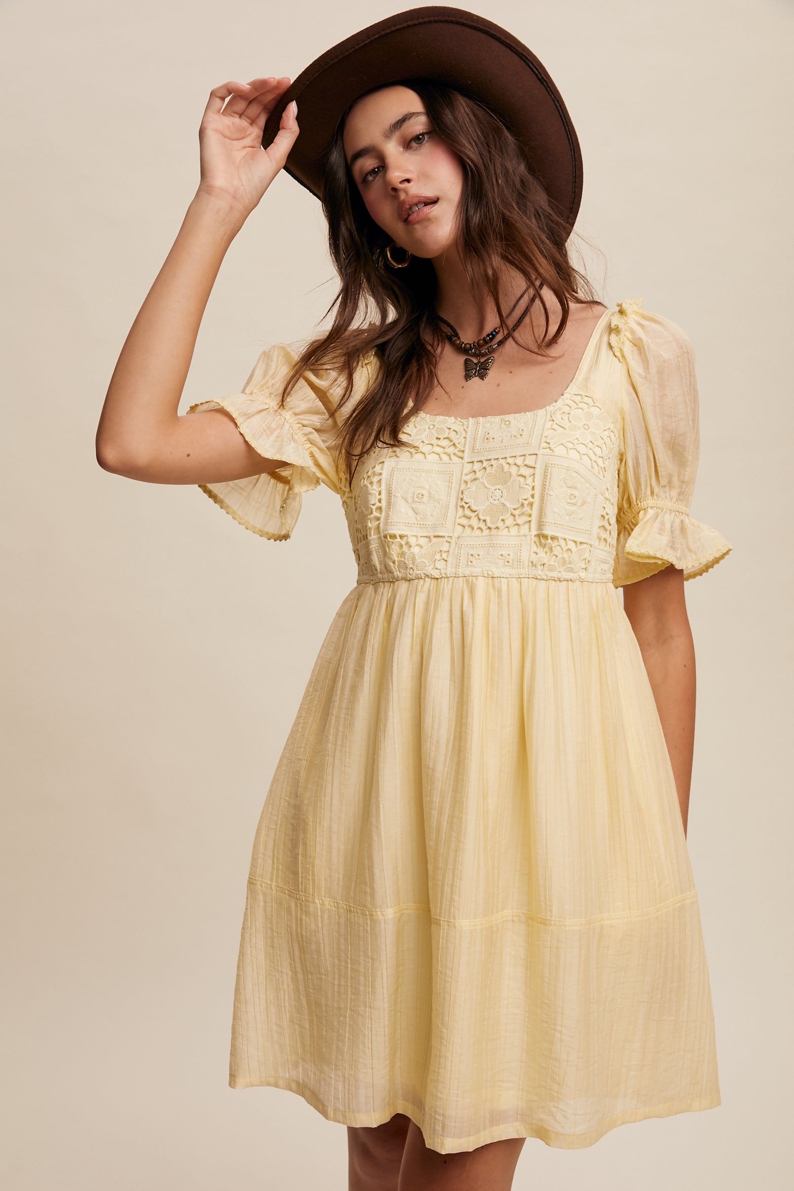 - Model is 5' 10" 34-26-36 and wearing a size Small Perfect for picnics, casual outings, or romantic dates, this dress pairs beautifully with dainty accessories and comfortable flats for a chic, effortless look.