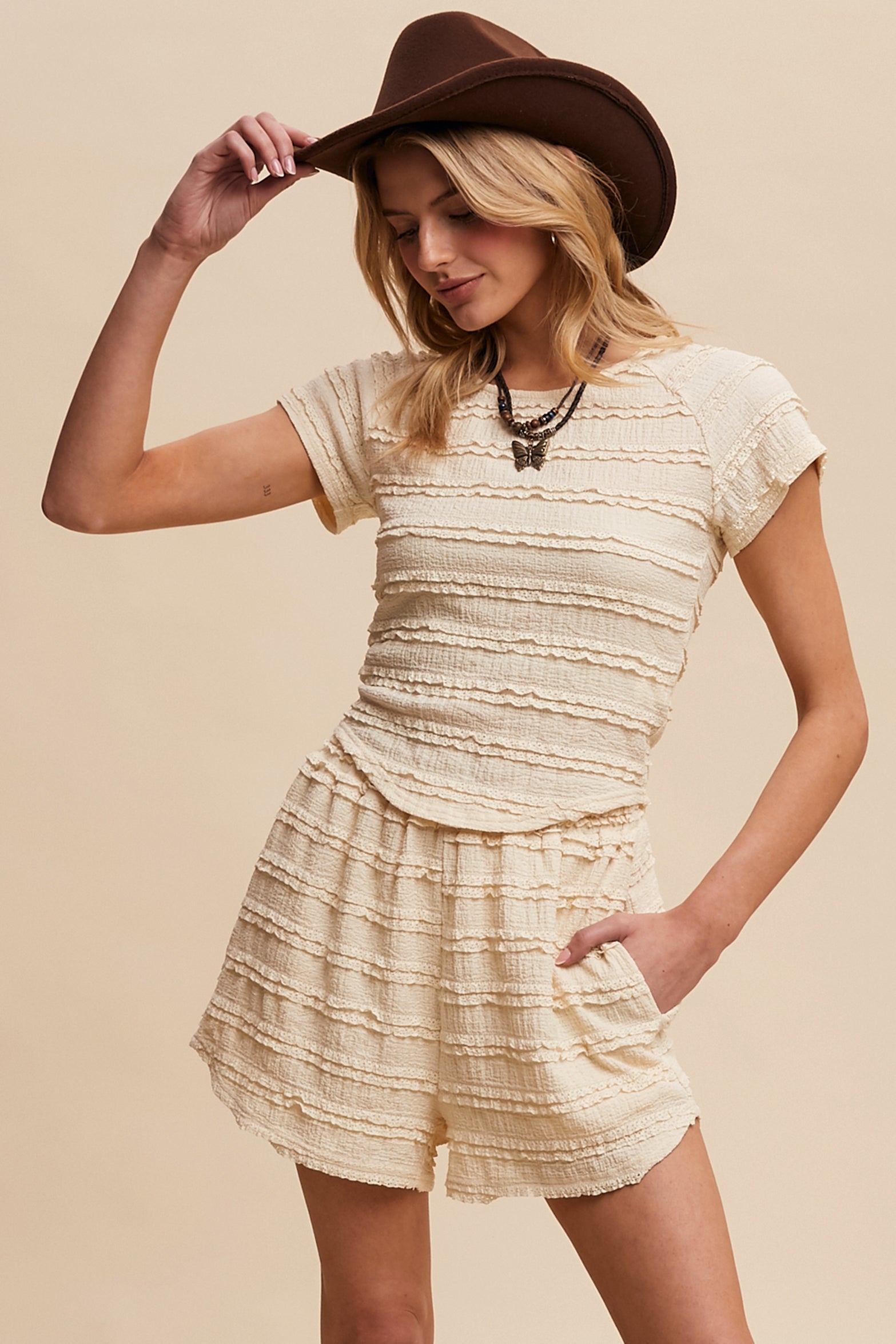 - Textured Ruffle Top and Shorts Two-Piece Set