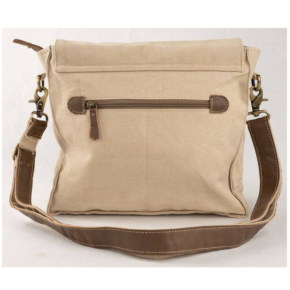 This unique bag is hand crafted using re-purposed canvas and military tents.