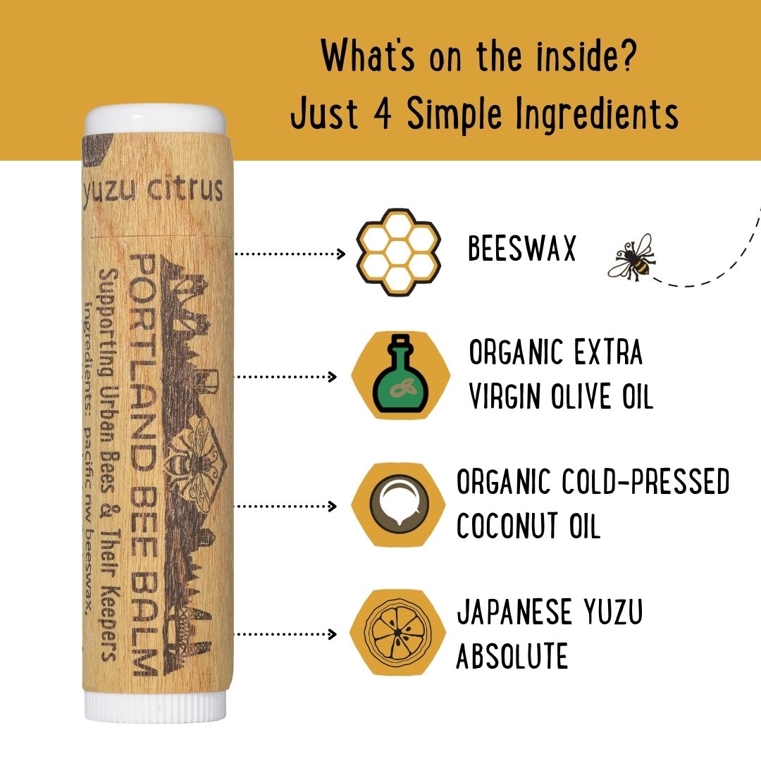 Introducing Yuzu Citrus Lip Balm from Portland Bee Balm. This organic lip balm is crafted using the highest quality local beeswax from Oregon and organic oils. We then infuse it with subtle yuzu citrus straight from Japan for a truly revitalizing experience.